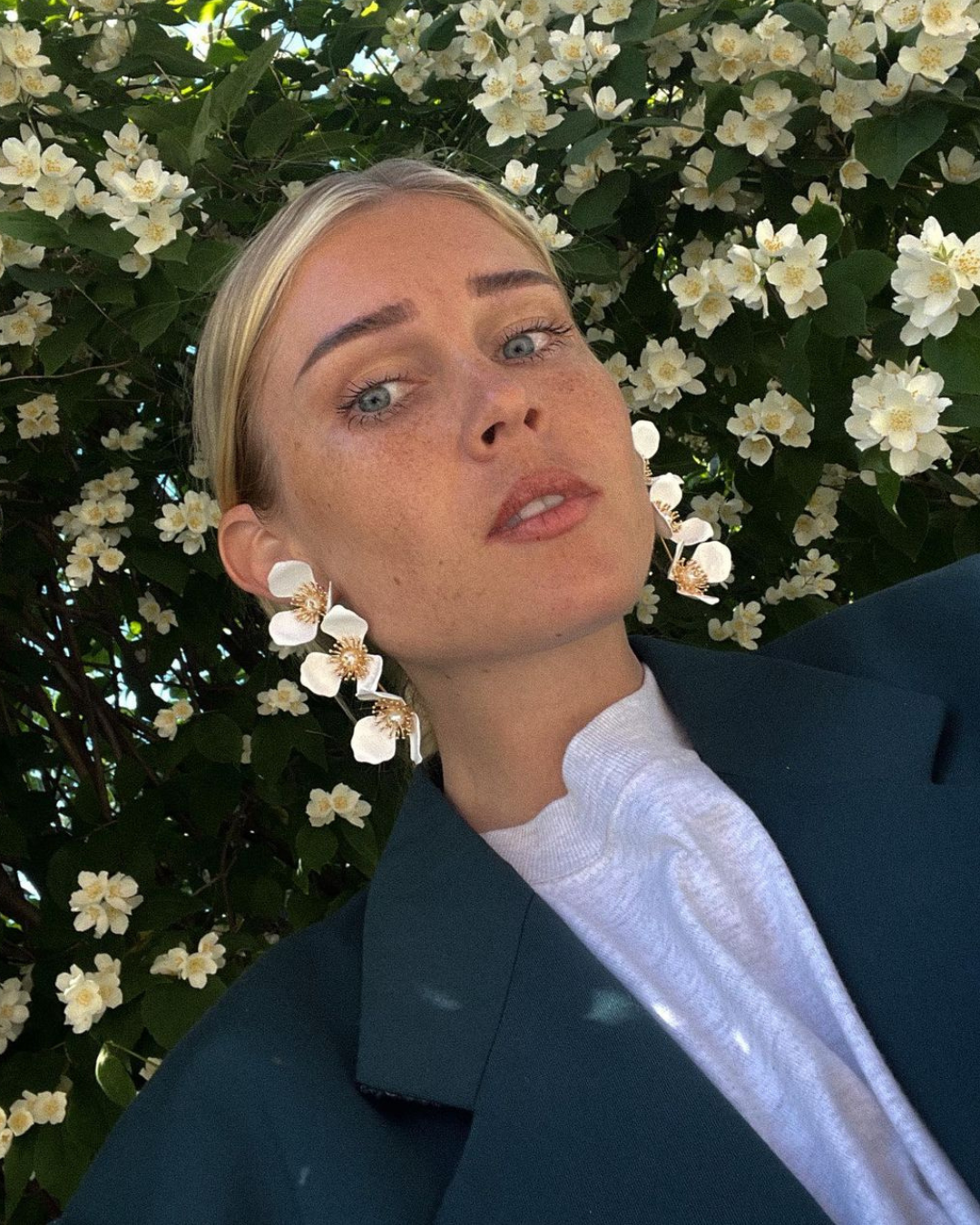 Triple Apple Flower Stud Earrings - Blanc