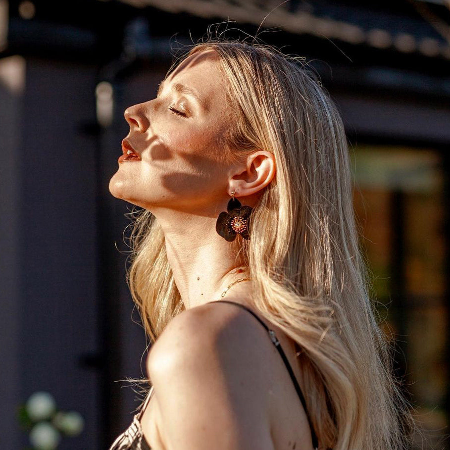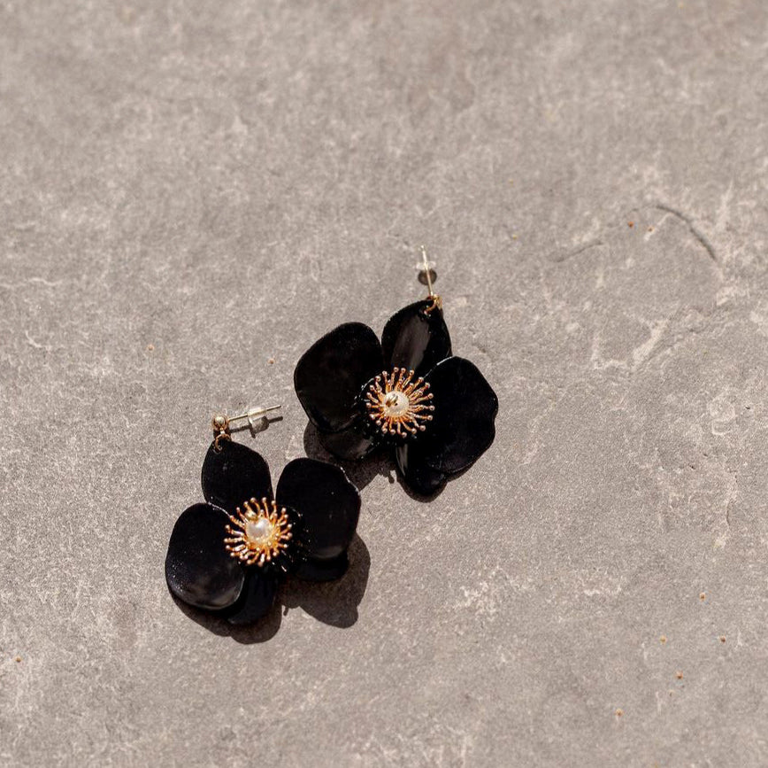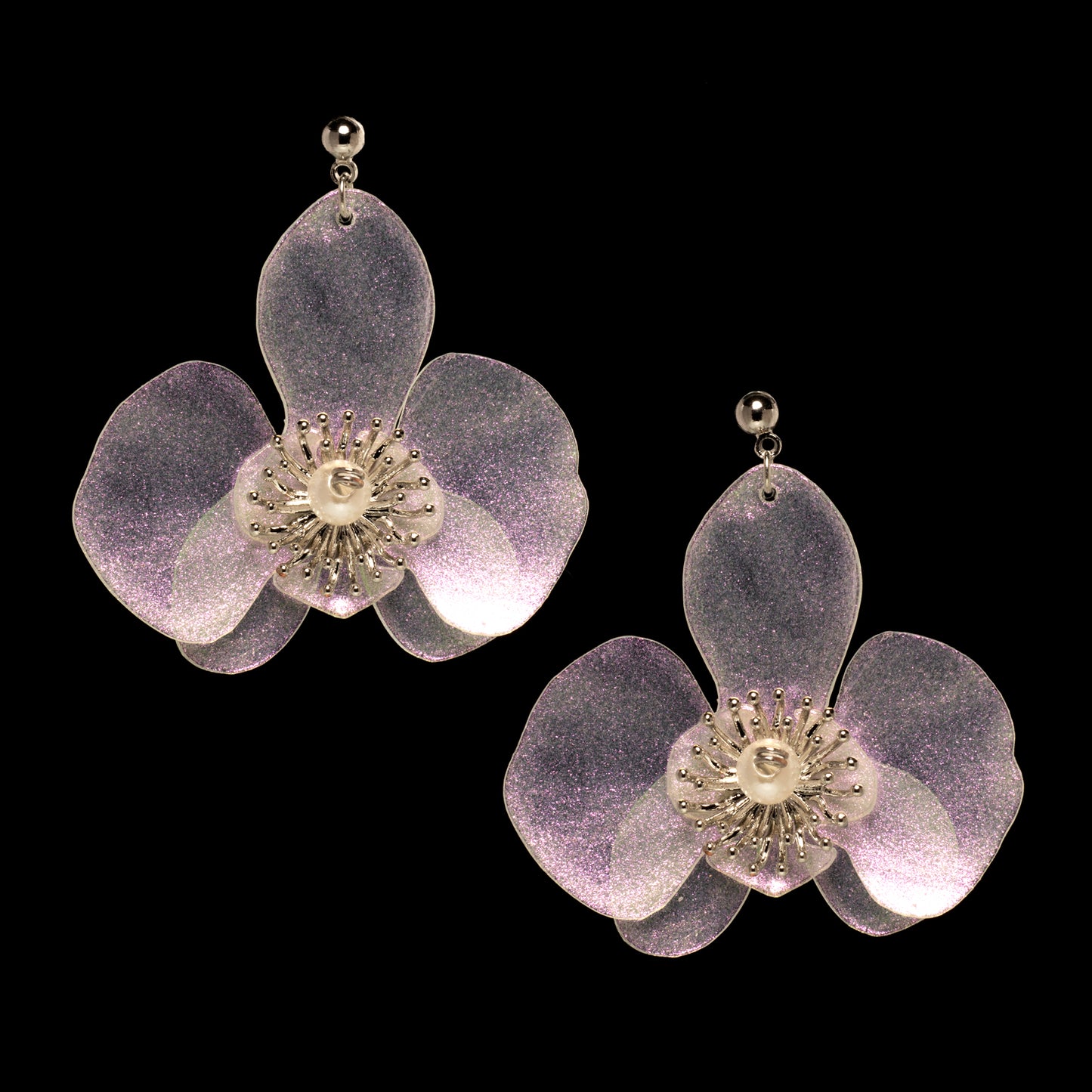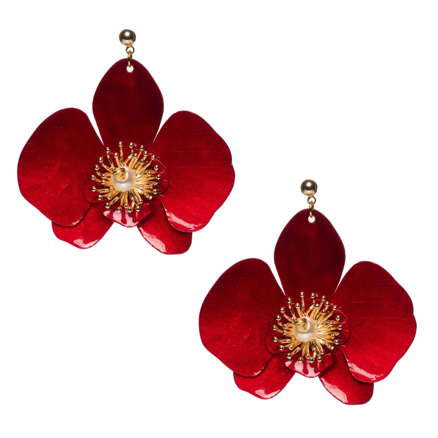 The main flower size: height 4.5 cm, width 4.9 cm. Weight: 2.5 g per earring.