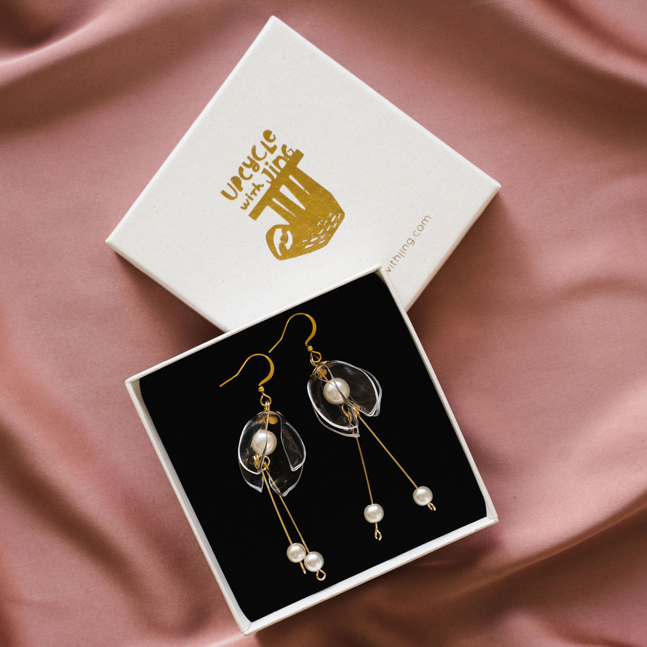 No pierced ears? We can swap any ear hook to a clip-on — just leave a note at checkout or email us (jing@upcyclewithjing.com).